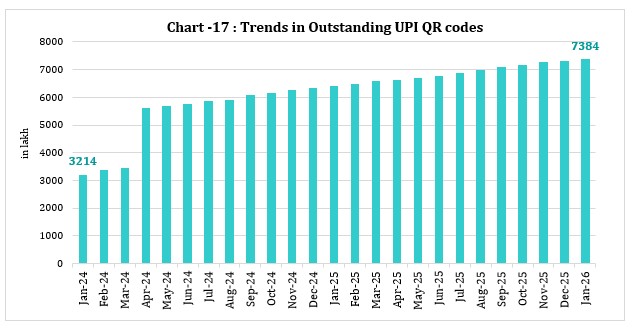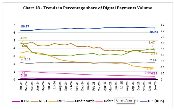 1. डिजिटल भुगतान - मात्रा और मूल्य 2. कुल भुगतान - मात्रा और मूल्य 3. कुल खुदरा भुगतान - मात्रा और मूल्य 4. डिजिटल खुदरा भुगतान - मात्रा और मूल्य 5. थोक और खुदरा भुगतान प्रणालियों की तुलना a. भुगतान मात्रा की तुलना b. भुगतान मूल्य की तुलना 6. आरबीआई द्वारा संचालित भुगतान प्रणाली क. रियल टाइम ग्रॉस सेटलमेंट (आरटीजीएस) ख. राष्ट्रीय इलेक्ट्रॉनिक निधि अंतरण (एनईएफटी) 7. एनपीसीआई द्वारा परिचालित त्वरित भुगतान प्रणाली - एकीकृत भुगतान इंटरफ़ेस (यूपीआई) और तत्काल भुगतान प्रणाली (आईएमपीएस) 8. अन्य एनपीसीआई परिचालित भुगतान प्रणालियाँ क. मनी (भीम) आधार पे हेतु भारत इंटरफेस ख. राष्ट्रीय इलेक्ट्रॉनिक टोल संग्रह (एनईटीसी) (बैंक खाते से जुड़ा हुआ) ग. राष्ट्रीय स्वचालित समाशोधन गृह (एनएसीएच) - क्रेडिट और डेबिट 9. कार्ड और प्रीपेड भुगतान उपकरण (पीपीआई) क. डेबिट और क्रेडिट कार्ड ख. पीपीआई वॉलेट और कार्ड का उपयोग 10. पेपर संचालित भुगतान प्रणाली - चेक ट्रंकेशन सिस्टम (सीटीएस) 11. कार्ड स्वीकृति अवसंरचना और क्यूआर कोड क. कार्ड स्वीकृति अवसंरचना ख. यूपीआई क्यूआर कोड 12. भुगतान प्रणाली के अनुसार वॉल्यूम और वैल्यू शेयर क. डिजिटल भुगतान वॉल्यूम शेयर ख. डिजिटल भुगतान वाल्यू शेयर 13. टिकट का आकार क. खुदरा भुगतान प्रणालियों का टिकट आकार ख. एनईएफटी और आरटीजीएस भुगतान प्रणाली का टिकट आकार 14. व्यापार प्राप्य छूट प्रणाली (ट्रेड्स) क. ट्रेड्स - अपलोड और वित्तपोषित किए गए चालान ख. ट्रेड्स – ऑनबोर्ड किए गए खरीदार और विक्रेता |
