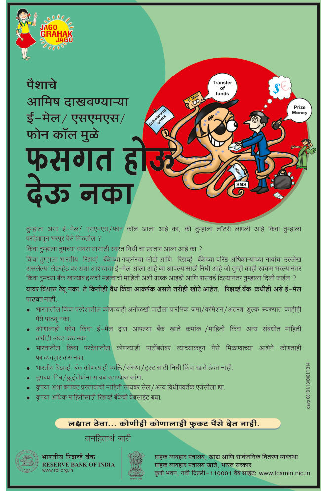 भारतीय रिझर्व्ह बँकेने (आर्थिक जागरूकता मेसेजेस) बुकलेट ज्याचा हेतू माहितीसाठी मूलभूत आर्थिक साक्षरता संदेश सामान्य जनते साठी प्रदान करायची आहे बुकलेटमध्ये बीस संस्था/उत्पादन निरपेक्ष आर्थिक जागरूकता आहे आर्थिक क्षमतेच्या चार संकल्पनांमध्ये संबंधित संदेश प्रसारित करणे, प्रसारित करणे,मूलभूत बँकिंग, डिजिटल आर्थिक साक्षरता आणि ग्राहक संरक्षण या संबधि तीसरे आवृत्ति प्रसारित केली आहे.