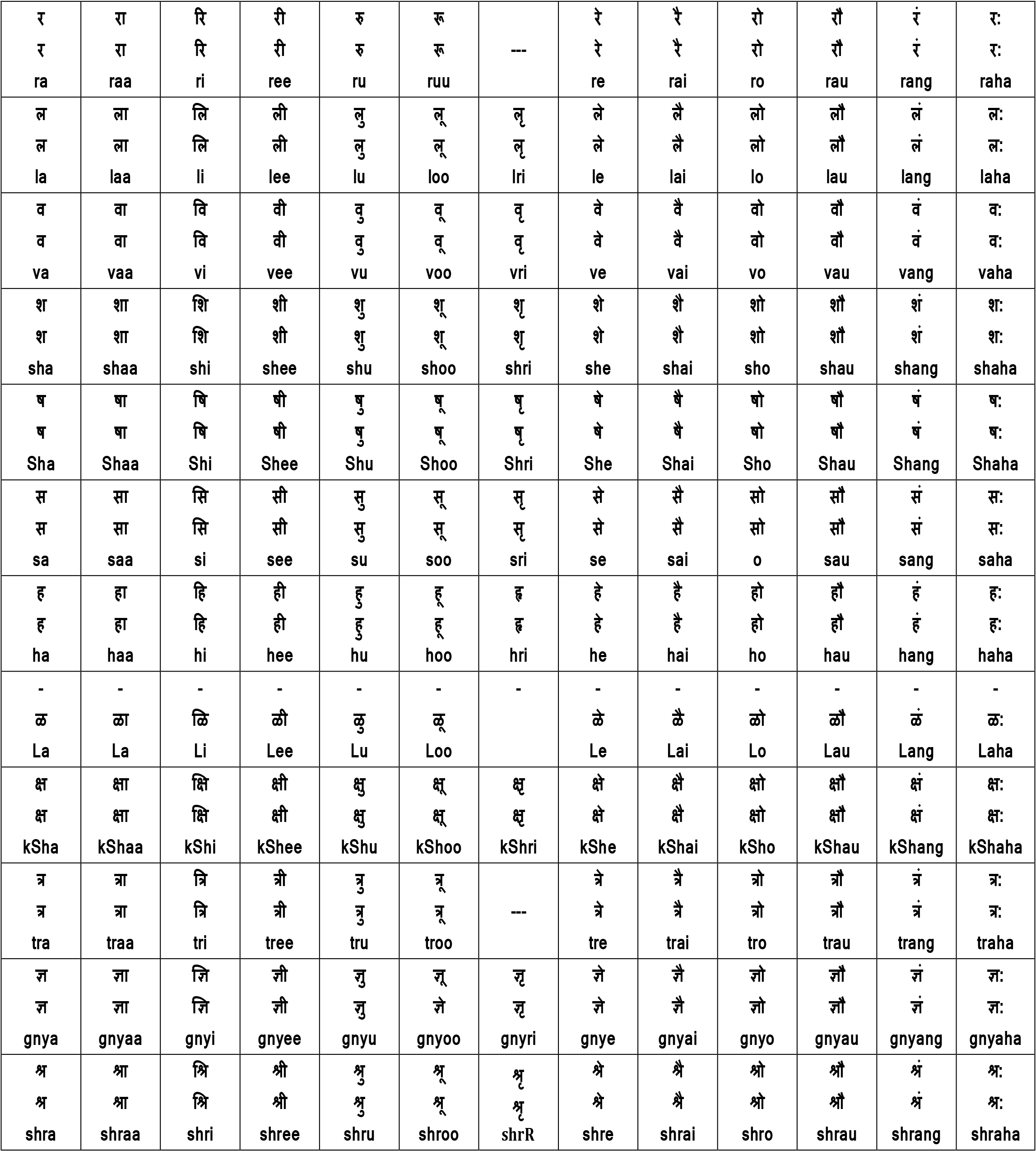 | ऋ ऋ | ृ | Ri |