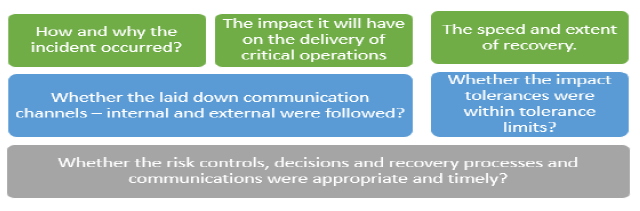 17.1 An RE should conduct a ‘lessons learned exercise’, including Root Cause Analysis, after any disruption to a business service with emphasis on critical service. This includes any potential material disruption to a third-party provider (including but not limited to a group entity) that feeds into the delivery of a critical business service. 17.2 The lessons learned exercise should utilise the information gathered as part of the incident management and disaster recovery process. The decisions and recovery processes determined to be appropriate throughout the incident management process should form the basis of the lessons learned exercise. 17.3 An RE should have predetermined criteria or questions basis the lessons learned exercise from the incidents. These questions should identify deficiencies, which caused induced failure in the continuity of service and these deficiencies should be addressed as a matter of priority. Specifically, at a minimum, the following should be considered: ![]() 17.4 The lessons learned exercises should define effective remediation measures to redress deficiencies and failure in the continuity of service. The more efficient use of resources for critical operations and adjustments to any impact tolerances determine whether a failure could have a wider impact on financial stability. A report/ self-assessment analysis document post the incident containing the above should be presented to the Board. 17.5 The lessons learned exercise allows an RE to reflect on the three-pillar approach to operational resilience and allows for a feedback loop into the first two pillars that encourages improvement in how an RE prepares for and recovers from disruptions. Doing so will also allow an RE to agree remedial actions and adjust any impact tolerances if determined. 18. Continuous improvement through Feedback Systems