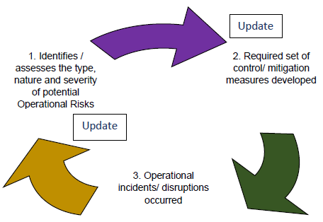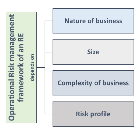 9.6 Effective use and sound implementation of technology can contribute to the control environment. For example, automated processes are less prone to error than manual processes. However, automated processes introduce risks that should be addressed through sound technology governance and infrastructure risk management programmes. 9.7 The use of technology related products, services, activities, processes and delivery channels exposes an RE to Operational Risk and the possibility of material financial loss. Consequently, an RE should have an integrated approach to identifying, measuring, monitoring and managing technology risks along the same precepts as Operational Risk Management. (Also refer to paragraph 15 of this Guidance Note) 9.8 While recourse to entities such as, but not limited to third-party service providers can help manage costs, provide expertise, expand product offerings, and improve services, it also introduces risks that RE should address. The integrated approach adopted by RE for its ORMF should necessarily include such third-party dependencies. Amongst others, the concentration of risk, complexity and downstream dependencies with regard to third-party service providers should be taken into account. While these risks may be unavoidable, identifying and monitoring of such risks would allow REs to initiate actions that could reasonably mitigate or manage them. These risk policies and risk management activities should include critical operations management and dependency management. (Also refer to paragraph 12 of this Guidance Note) 9.9 In those circumstances where internal controls do not adequately address risk and exiting the risk is not a reasonable option, management may complement controls by seeking to transfer the risk to another party such as through insurance. The Board of Directors should determine the maximum loss exposure the RE is willing to take and has the financial capacity to assume and should perform an annual review of the RE's risk and insurance management programme, including specific insurance or risk transfer needs of an RE. 9.10 Because risk transfer is an imperfect substitute for sound controls and risk management programmes, REs should view risk transfer tools as complementary to, rather than a replacement for internal Operational Risk controls. Having mechanisms in place to quickly identify, recognise and rectify distinct Operational Risk errors can greatly reduce exposures. Careful consideration also needs to be given to the extent to which risk mitigation tools such as insurance truly reduce risk, transfer the risk to another business sector or area, or create a new risk (e.g., counterparty risk, legal risk). Pillar 2: Build Resilience 10. Essential Elements of Operational Resilience 10.1 Operational resilience is an outcome that benefits from the effective management of Operational Risk. Activities such as risk identification and assessment, risk mitigation (including the implementation of controls) and the monitoring of risks and control effectiveness work together to minimise operational disruptions and their effects. The overarching principle of operational resilience is the acceptance that disruptions will occur, and that REs need to be prepared to respond accordingly and have measures in place to limit the impact. The REs need to ensure that they have prepared effectively, and have the flexibility to withstand, absorb, respond, adapt and recover and learn from disruptions with minimal impact on their critical operations. Further, management’s focus on the RE’s ability to respond to and recover from disruptions, assuming failures will occur, will support operational resilience. An operationally resilient RE is less prone to incur untimely lapses in its operations and losses from disruptions, thus lessening impact on critical operations and related services, functions and systems. While it may not be possible to avoid certain Operational Risks, such as a pandemic, it is possible to improve the resilience of an RE’s operations to such events. 10.2 Business continuity, dependencies on third parties, and the technology upon which REs rely are important factors for REs to consider when strengthening their operational resilience. 10.3 It is essential for REs to ensure that existing risk management frameworks, business continuity plans, and third-party dependency management are implemented consistently within the organisation. As operational resilience draws from such elements like business continuity, third-party risk management, ICT & cyber risk management, incident management, and wider aspects of Operational Risk Management, a holistic approach is essential if an RE is to enhance the resilience of its critical operations, regardless of the type of disruption. Approaching operational resilience through a critical operations lens encourages an RE to prioritise what is critical or important to the RE and the financial system, and understand the interconnections and interdependencies involved in delivering those operations. REs should therefore verify that their operational resilience approach is appropriately harmonised with the stated actions, organisational mappings, critical operations and critical shared services (including the services which are essential for the industry) contained in their recovery and resolution plans, which ultimately are important for the financial system stability. 11. Mapping of Interconnections and Interdependencies