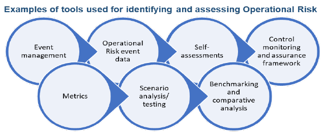 6.1 Risk identification and assessment are fundamental characteristics of an effective Operational Risk Management system, and directly contribute to operational resilience capabilities. Effective risk identification considers both internal and external factors. Sound risk assessment allows an RE to better understand its risk profile and allocate risk management resources and strategies most effectively. For example, figure below shows the wide spectrum of risks (risk universe) which could be existing in third-party relationships. ![]() 6.2 Examples of tools (indicative and not exhaustive) used for identifying and assessing Operational Risk are: ![]() 6.2.1 Self-assessments – REs often perform self-assessments of their Operational Risks and controls at various levels. The assessments typically evaluate inherent risk (the risk before controls are considered), the effectiveness of the control environment, and residual risk (the risk exposure after controls are considered) and contain both quantitative (such as metrics, benchmarking, etc.) and qualitative (such as likelihood and consequence of the risk event in determination of inherent and residual risk ratings) elements. The assessments may utilise business process mapping to identify key steps in business processes, activities, and organisational functions, as well as the associated risks and areas of control weakness. The assessments should contain sufficiently detailed information on the business environment, Operational Risks, underlying causes, controls and evaluation of control effectiveness to enable an independent reviewer to determine how the RE reached its ratings. A risk register can be maintained to collate this information to form a meaningful view of the overall effectiveness of controls and facilitate oversight by senior management, risk committees, and the Board of Directors. 6.2.2 Operational Risk event data – REs often maintain a comprehensive Operational Risk event dataset that collects all material events experienced by the RE and serves as basis for Operational Risk assessments. The event dataset typically includes internal loss data, near misses, etc., and is classified according to a taxonomy defined in the ORMF policies and consistently applied across the RE. It also includes the date of the event (occurrence date, discovery date and accounting date) and, in the case of loss events, financial impact. When other root cause information for events is available, ideally it can also be included in the Operational Risk dataset. Where feasible, REs are encouraged to also seek to gather external Operational Risk event data and use this data in their internal analysis, as it is often informative of risks that are common across the industry. 6.2.3 Event management – A sound event management approach typically includes analysis of events to identify new Operational Risks, understanding the underlying causes and control weaknesses, and formulating an appropriate response to prevent recurrence of similar events. This information is an input to the self-assessment and, in particular, to the assessment of control effectiveness. 6.2.4 Control monitoring and assurance framework – Incorporating an appropriate control monitoring and assurance framework facilitates a structured approach to the evaluation, review and ongoing monitoring and testing of key controls. The analysis of controls ensures these are suitably designed for the identified risks and are operating effectively. The analysis should also consider the sufficiency of control coverage, including adequate prevention, detection and response strategies. The control monitoring and testing should be appropriate for the different Operational Risks and across business areas. Further details on control and mitigation are given in paragraph 9 of this Guidance Note. 6.2.5 Metrics – Using Operational Risk event data and risk and control assessments, REs often develop metrics to assess and monitor their Operational Risk exposure. These metrics may be simple indicators, such as event counts, or result from more sophisticated exposure models. Metrics provide early warning information to monitor ongoing performance of the business and the control environment, and to report the Operational Risk profile. Effective metrics clearly link the associated Operational Risks and controls. Monitoring metrics and related trends through time against laid down thresholds or limits or tolerance levels provides valuable information for risk management and reporting purposes. 6.2.6 Scenario analysis – Scenario analysis is a method to identify, measure and analyse a range of scenarios, including low probability and high severity events, some of which could result in severe Operational Risk losses. It typically involves workshops or meetings of subject matter experts including senior management, business management and senior Operational Risk staff and other functional areas such as compliance, human resources and IT risk management, to develop and analyse the drivers and range of consequences of potential events. Inputs to the scenario analysis would typically include relevant internal and external loss data, information from self-assessments, the control monitoring and assurance framework, forward-looking metrics, root-cause analyses and the process framework. The scenario analysis process could be used to develop a range of consequences of potential events, including impact assessments for risk management purposes, supplementing other tools based on historical data or current risk assessments. An RE must carry out regular scenario analysis using the above parameters, for testing its ability to remain within its impact tolerance in the event disruption of its operations, for each of its critical services. In carrying out the scenario analysis, an RE must identify the range of adverse circumstances of varying nature, severity and duration, relevant to its business and risk profile and consider