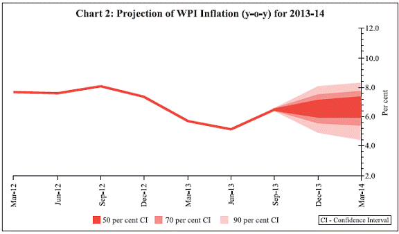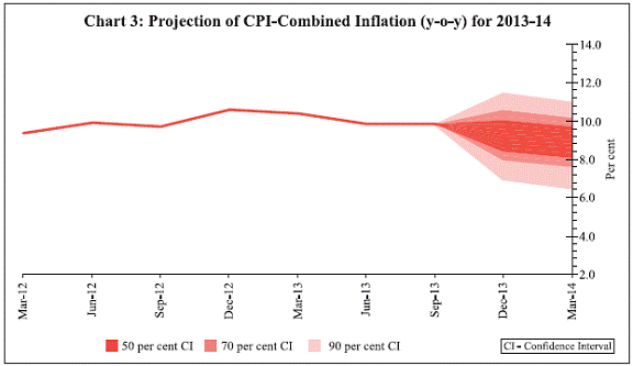 Consequently, the reverse repo rate under the LAF stands adjusted to 6.75 per cent and the Bank Rate stands reduced to 8.75 per cent with immediate effect. With these changes, the MSF rate and the Bank Rate are recalibrated to 100 basis points above the repo rate. Assessment 2. Since the Mid-Quarter Review in September, the outlook for global growth has improved modestly, with fiscal concerns abating in the US and lead indicators of activity firming up in the Euro area and the UK. 3. In emerging and developing economies, the prospect of delay in the taper of the Federal Reserve’s bond purchases has brought calm to financial markets, and capital flows have resumed. Nevertheless, headwinds to growth from domestic constraints continue to pose downside risks, and vulnerabilities to sudden shifts in the external environment remain. 4. In India, industrial activity has weakened, with a contraction in consumer durables and tepid growth in capital goods reflecting the ongoing downturn in both consumption and investment demand. Strengthening export growth and signs of revival in some services, along with the expected pick-up in agriculture, could support an increase in growth in the second half of 2013-14 relative to the first half, raising real GDP growth from 4.4 per cent in Q1 to a central estimate of 5.0 per cent for the year as a whole (Chart 1). The revival of large stalled projects and the pipeline cleared by the Cabinet Committee on Investment may buoy investment and overall activity towards the close of the year. 5. In the meantime, with many large entities holding back on payments, liquidity pressures are building up on small and medium enterprises. A number are facing conditions of financial distress. Remedies partly lie in the speed-up of government and public sector payments, and on measures to channel credit to small and medium enterprises. 6. Inflation measured by the wholesale price index (WPI) rose in September for the fourth month in succession. The pass-through of rupee depreciation into prices of manufactured products is acting, along with elevated food and fuel inflation, to offset possible disinflationary effects of low growth. While food price pressures may ease with the arrival of the kharif harvest and the usual seasonal moderation, overall WPI inflation is expected to remain higher than current levels through most of the remaining part of the year (Chart 2), warranting an appropriate policy response. 7. Retail inflation measured by the consumer price index (CPI) has also risen sharply across food and non-food constituents, including services, keeping inflation expectations high. Notwithstanding the expected edging down of food inflation, retail inflation is likely to remain around or even above 9 per cent (Chart 3) in the months ahead, absent policy action. 8. Liquidity management has been calibrated to the system’s requirements arising from the sharp pick-up in credit relative to deposit growth and festival-related demand for currency. Liquidity up to 0.5 per cent of bank-wise NDTL is available through overnight LAF repos. Furthermore, export credit refinance of up to 50 per cent of eligible export credit outstanding amounts to approximately 0.5 per cent of system-level NDTL. To provide market participants with additional access to primary liquidity, as well as greater flexibility in managing reserve requirements, term repos of 7-day and 14-day tenor have been introduced to provide liquidity equivalent to 0.25 per cent of NDTL. As a result of the measures taken by the Reserve Bank to ease liquidity, the average drawal on the MSF has declined significantly from about `1.4 trillion in mid-September to `0.4 trillion by mid-October, and money market rates have fallen by 125 basis points. Going forward, however, the more durable strategy for mitigating mismatches between the supply of, and demand for, funds is for banks to step up efforts to mobilise deposits. 9. As regards the external sector, the improvement in export performance over the last two months, coupled with the contraction in non-oil import demand, has enabled a perceptible narrowing of the trade deficit with favourable implications for the current account deficit (CAD) going forward. Policy interventions have bridged the external financing gap. These factors have brought some calm to the foreign exchange market. However, normalcy will be restored to the exchange market only when the demand for dollars from public sector oil marketing companies is fully returned to the market. Policy Stance and Rationale 10. From September, as steps to contain the CAD started taking effect in an improving external environment, volatility in the foreign exchange market ebbed and it became possible to unwind the exceptional liquidity tightening measures. Keeping in view the need to infuse liquidity into the system to normalise liquidity conditions, term repos will now be conducted for a total notified amount equivalent to 0.5 per cent of NDTL of the banking system. In addition, the MSF rate will be reduced by 25 basis points. 11. With the more recent upturn of inflation, and with inflation expectations remaining elevated anticipating the pass-through of exchange rate depreciation and ongoing adjustment in administered fuel prices, it is important to break the spiral of rising price pressures in order to curb the erosion of financial saving and strengthen the foundations of growth. It is in this context that the LAF repo rate has been increased by 25 basis points. 12. With the reduction of the MSF rate and the increase in the repo rate in this review, the process of re-aligning the interest rate corridor to normal monetary policy operations is now complete. 13. The policy stance and measures in this review are intended to curb mounting inflationary pressures and manage inflation expectations in a situation of weak growth. These will help strengthen the environment for growth by fostering macroeconomic and financial stability. T