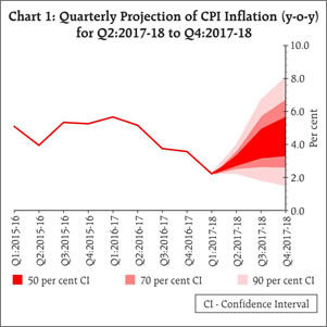 Consequently, the reverse repo rate under the LAF remains at 5.75 per cent, and the marginal standing facility (MSF) rate and the Bank Rate at 6.25 per cent. The decision of the MPC is consistent with a neutral stance of monetary policy in consonance with the objective of achieving the medium-term target for consumer price index (CPI) inflation of 4 per cent within a band of +/- 2 per cent, while supporting growth. The main considerations underlying the decision are set out in the statement below. Assessment 2. Since the MPC’s meeting in August 2017, global economic activity has strengthened further and become broad-based. Among advanced economies (AEs), the US has continued to expand with revised Q2 GDP growing at its strongest pace in more than two years, supported by robust consumer spending and business fixed investment. Recent hurricanes could, however, weigh on economic activity in the near-term. In the Euro area, the economic recovery gained further traction and spread, underpinned by domestic demand. While private consumption benefited from employment gains, investment rose on the back of favourable financing conditions. The Euro area purchasing managers’ index (PMI) for manufacturing soared to its highest reading in more than six years. The Japanese economy continued on a path of healthy expansion despite a downward revision in growth since March 2017 on weaker than expected capital expenditure. 3. Among the major emerging market economies (EMEs), strong growth in Q2 in China was powered by retail sales, and imports grew at a rapid pace, suggesting robust domestic demand; investment activity, however, slowed down. The Brazilian economy expanded for two consecutive quarters in Q2 on improving terms of trade, even as the impact of recession persists on the labour market. Economic activity in Russia recovered further, supported by strengthening global demand, firming up of oil prices and accommodative monetary policy. Although South Africa has emerged out of recession in Q2, the economy faces economic and political challenges. 4. The latest assessment by the World Trade Organisation (WTO) indicates a significant improvement in global trade in 2017 over the lacklustre growth in 2016, backed by a resurgence of Asian trade flows and rising imports by North America. Crude oil prices hit a two-year high in September on account of the combined effect of a pick-up in demand, tightening supplies due to production cuts by the Organisation of the Petroleum Exporting Countries (OPEC) and declining crude oil inventories in the US. Metal prices have eased since mid-September on weaker than expected Chinese industrial production data. Bullion prices touched a year’s high in early September on account of safe-haven demand due to geo-political tensions, before weakening somewhat in the second half. Weak non-oil commodity prices and low wage growth kept inflation pressures low in most AEs and subdued in several EMEs, largely reflecting country-specific factors. 5. Global financial markets have been driven mainly by the changing course of monetary policy in AEs, generally improving economic prospects and oscillating geo-political factors. Equity markets in most AEs have continued to rise. In EMEs, equities generally gained on improved global risk appetite, supported by upbeat economic data and expectations of a slower pace of monetary tightening in major AEs. While bond yields in major AEs moved sideways, they showed wider variation in EMEs. In currency markets, the US dollar weakened further and fell to a multi-month low in September on weak inflation, though it recovered some lost ground in the last week of September on a hawkish US Fed stance and tensions around North Korea. The euro surged to a two and a half year high against the US dollar towards end-August on positive economic data, whereas the Japanese yen experienced sporadic bouts of volatility triggered by geo-political risks. Emerging market currencies showed divergent movements and remained highly sensitive to monetary policies of key AEs. Capital flows to EMEs have continued, but appear increasingly vulnerable to the normalisation of monetary policy by the US Fed. 6. On the domestic front, real gross value added (GVA) growth slowed significantly in Q1 of 2017-18, cushioned partly by the extensive front-loading of expenditure by the central government. GVA growth in agriculture and allied activities slackened quarter-on-quarter in the usual first quarter moderation, partly reflecting deceleration in the growth of livestock products, forestry and fisheries. Industrial sector GVA growth fell sequentially as well as on a y-o-y basis. The manufacturing sector – the dominant component of industrial GVA – grew by 1.2 per cent, the lowest in the last 20 quarters. The mining sector, which showed signs of improvement in the second half of 2016-17, entered into contraction mode again in Q1 of 2017-18, on account of a decline in coal production and subdued crude oil production. Services sector performance, however, improved markedly, supported mainly by trade, hotels, transport and communication, which bounced back after a persistent slowdown throughout 2016-17. Construction picked up pace after contracting in Q4 of 2016-17. Financial, real estate and professional services turned around from their lacklustre performance in the second half of 2016-17. Of the constituents of aggregate demand, growth in private consumption expenditure was at a six-quarter low in Q1 of 2017-18. Gross fixed capital formation exhibited a modest recovery in Q1 in contrast to a contraction in the preceding quarter. 7. Turning to Q2, the south-west monsoon, which arrived early and progressed well till the first week of July, lost momentum from mid-July to August – the crucial period for kharif sowing. By end-September, the cumulative rainfall was deficient by around 5 per cent relative to the long period average, with 17 per cent of the geographical area of the