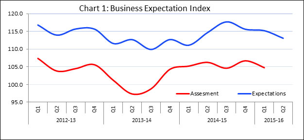 As a result, the business sentiments of the Indian manufacturing sector, as inferred from movements in Business Expectation Index (BEI), decreased in the assessment quarter (106.7 to 104.8). Expectation Quarter (Q2: 2015-16) -