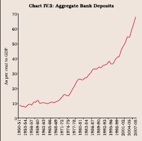 4.83 Historically, banks in India have played a central role in mobilising and allocating resources for supporting the growth process. The nationalisation of private sector banks in 1969 marked a turning point in the history of the banking sector in India. Large branch expansion that followed enlarged the deposit base of banks in rural and semi-urban areas. Although another wave of nationalisation in 1980 carried forward this process, the aggressive strategies of fund mobilisation by mutual funds and NBFCs in the backdrop of buoyant capital market in the second half of the 1980s set in process of some disintermediation of household savings. Some deceleration in bank deposit growth was again observed during 1995-2005 in tune with the maturing of saving preferences under a deregulated market environment. However, bank deposits growth accelerated significantly during 2005-2008 due to vigorous deposit mobilisation efforts by banks in the wake of strong credit offtake. This was despite the sharp growth in other instruments such as shares and units of mutual funds.