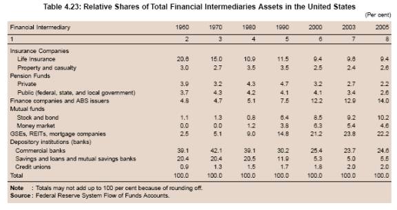 4.54 International experience shows that the role of financial intermediation has evolved over time, and varied across countries in tune with their state of financial development. A feature resulting from the evolutionary process of financial development has been progressive reduction in transaction costs and asymmetric information which have, to some extent, resulted in decline in the importance of traditional banking business of taking deposits and extending loans. Second, in tune with this, other financial intermediaries such as the pension funds and mutual funds have grown in importance in the recent period. Third, as financial development has introduced new financial markets such as financial futures, which are markets for intermediaries rather than individuals, the demand for new forms of financial intermediation has grown in relation to the traditional forms. Therefore, in recent years, modern theories of intermediation have developed that stress risk trading, risk management and participation costs as the key reasons for existence of modern intermediaries. In this modern set up, although the importance of non-bank intermediaries such as pension funds and mutual funds has increased significantly, banks have continued to play a significant role by diversifying their activities from traditional form of financial intermediation, whereby the sources of income originate more from fee-based activities to meet the demand for funds rather than through accepting deposits and extending loans. The key features of evolution of this financial intermediation process and the associated implications for the banking sector are borne out by the experience of development of financial systems in the US, the UK, France, Germany and Japan (Allen and Santomero, 2001).