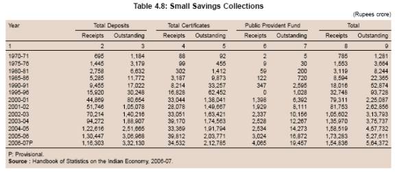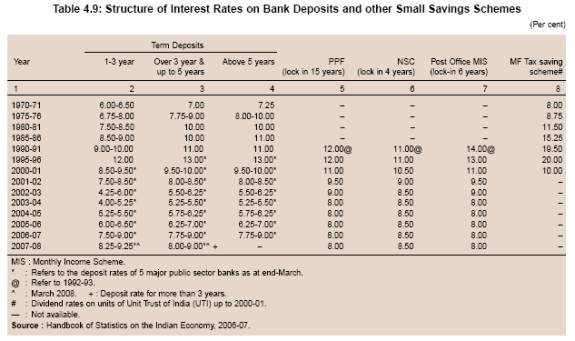 4.29 In this phase, however, bank deposits faced competition mainly from post office deposits and small savings, the collection under which increased by more than four times (Table 4.8).