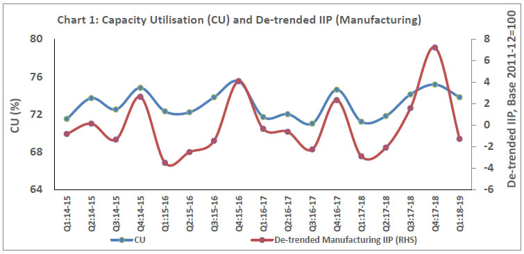 1 The survey responses are voluntary and difference in sample composition may affect the results to some extent. The 41st round of the OBICUS covering 1,061 manufacturing companies with reference period as January-March 2018 was released on the RBI website on August 01, 2018. 2 IIP is calculated on a fixed base (currently 2011-12=100) whereas the denominator (viz. installed capacity) in CU is updated every quarter. For comparison, the trend component of IIP is removed. | |||||||||||||||||||||||||||||||||||||||||||||||||||||||||||||||||||||||||||||||||||||||||||||||||||||||||||||||||||||||||||||||||||||||||||||||||||||||||||||||||||||||||||||||||||||||||||||||||||||||||||||||||