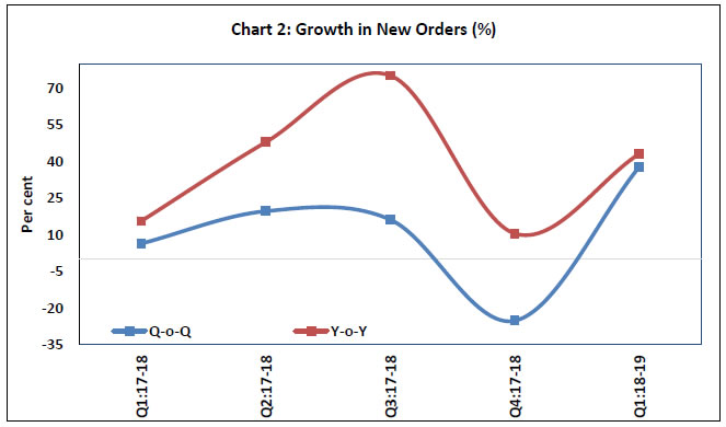 Today, the Reserve Bank released the results of the 42nd round of the Order Books, Inventories and Capacity Utilisation Survey (OBICUS) for the quarter April-June 2018 covering 994 manufacturing companies. The survey provides a snapshot of demand conditions in India’s manufacturing sector1. Highlights: 1) Capacity Utilisation (CU): At the aggregate level, CU recorded a seasonal decline and stood at 73.8 per cent in Q1:2018-19, co-moving with the de-trended index of industrial production2 (IIP) (Chart 1). However, seasonally adjusted CU rose by 1.7 percentage points to 74.9 per cent in Q1:2018-19. 2) Order Books: New orders growth regained buoyancy in Q1:2018-19. (Chart 2) 3) Finished Goods Inventory (FGI) to Sales Ratio: The FGI to sales ratio rose from its level in the previous quarter, due to relatively higher growth in finished goods, but remained lower than its level a year ago (Chart 3). 4) Raw Material Inventory (RMI) to Sales Ratio: Producers seem to have stocked up on raw materials in anticipation of a rise in demand in the forthcoming festival season leading to a sharp rise in the RMI to Sales ratio (Chart 3). Historical time series have been made available in excel format. ANNEX 1: Data Tables