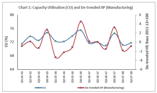 1 The survey responses are voluntary and difference in sample composition may affect the results to some extent. The 38th round of the OBICUS covering 805 manufacturing companies with reference period as April-June 2017 was released on the RBI website on October 04, 2017. 2 IIP is calculated on a fixed base (currently 2011-12=100) whereas the denominator (viz. installed capacity) in CU is updated every quarter. For comparison, the trend component of IIP is removed. | |||||||||||||||||||||||||||||||||||||||||||||||||||||||||||||||||||||||||||||||||||||||||||||||||||||||||||||||||||||||||||||||||||||||||||||||||||||||||||||||||||||||||||||||||||||||||||||||||||||||||||||||||