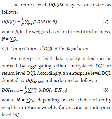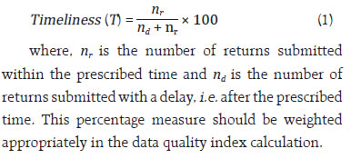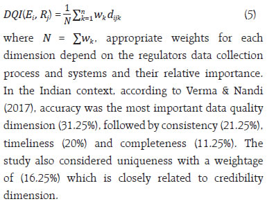 by Debasis Nandi and Sujeesh Kumar^ In a complex data ecosystem, ensuring the quality of data becomes challenging for central bankers, particularly in a regulatory landscape. As measuring data quality is contextual and subjective, it is emphasized that the need for tailored measurement strategies to develop various data quality dimensions to measure the quality of data effectively. This article provides an approach for constructing a data quality index (DQI) to evaluate the quality of the data submitted by the regulated entities. The article outlines a stepwise approach for constructing the data quality index at various levels. The proposed DQI framework enables central banks and regulators to monitor and improve data quality systematically enhancing institutional credibility, regulatory and supervisory efficiency, and public trust. Introduction Central Banks play an important role, inter alia, in maintaining financial stability and ensuring the health of the banking sector. Daily operations of the banking system produce large amount of data. Such data is an important asset for institutions like central banks, multilateral bodies, and many other organizations particularly entrusted with data collection and its maintenance to support data driven policymaking. The ultimate objective of data management is the production and dissemination of quality data–a precious asset in the present world. A key part of the functioning of the central banks involves the collection of huge volume of banking and financial sector data from the regulated entities (REs). In a complex and dynamic data ecosystem, measuring data quality also challenging. Automation has an important role in ensuring the quality of data being collected, processed, and maintained at the data repository of the central bank. It will enable to effectively monitor various economic indicators, obtaining regulatory and supervisory insights and facilitating data driven policies for the well-being of the public. Over the years, the data collection and dissemination process has undergone several transformational changes due to the rapid technological advancements witnessed across the globe. Organizations, particularly central banks have adopted advanced statistical techniques and technology tools to validate the data generation process and best efforts have been made to address emerging data gaps and challenges. While addressing the challenges, an evolving multitude of non-traditional data is adding more complexity in the data ecosystem. Girard (2020) noted that one of the of organizational challenges for managing data in the (AI) era is equipping staff to the latest tools and technologies. Measuring data quality is subjective in nature as the measurement involves various techniques and depends on the type of data produced. A well-defined structure of data quality framework with suitable dimensions is an appropriate way to measure the quality of data (Van G.B. 2023). Motivated by this fact, a structural approach for measuring various dimensions of data quality and deriving data quality indices for the data generation and collection process have been attempted. With this backdrop, this article has the primary objective of providing an approach to measure the data quality considering various data quality dimensions defined in the literature. The existing data quality frameworks by various organisations does not provide specific formula for calculating various measures of data quality dimensions, while it specifies broad guidelines for assessing various quality dimensions. Besides, frameworks do not suggest a data quality index (DQI) measure for data collection process and dissemination process separately. In the Indian context, the Reserve Bank of India (RBI) has recently published supervisory data quality index (sDQI) scores for the supervised entities based on four data quality dimensions viz., accuracy, completeness, timeliness and consistency. The sDQI provides a measure of the supervisory data quality, forming the basis for supervisory examinations (RBI,2025). The sDQI is intended to measure the data quality of select supervisory returns in a supervisory data collection perspective. In the central banking context, data provided by the regulated entities not merely for the supervisory purpose, while it is being used for regulatory, policy formulation, statistical data dissemination, research and various other purposes. The approach outlines in this article is not limited to supervisory data; it encompasses all types of data collected from regulatory entities through prescribed returns. Furthermore, the DQI presented in this article extends beyond the four data quality dimensions, covering data collection and dissemination aspects. This article thus helps bridge existing gaps in this aspect. The rest of the paper is structured into five sections. The next section presents a brief review of the literature. In Section III a description of various data quality dimensions is given, while Section IV outlines the method to construct a data quality index using several dimensions discussed in section III. Finally, section V concludes the article. Data quality has been defined differently across the literature. Data quality is the extent to which the data satisfies the users’ needs (Wang, 1998). One of the widely accepted definitions of data quality by Wang and Strong (1996) is ‘fitness for use’. While it was argued by Strong et al. (1997), that fitness for usage varies for different users under different circumstances and therefore data quality is relative and cannot be evaluated independent of users. Federal Committee on Statistical Methodology (FCSM) defined data quality as the degree to which data capture the desired information using appropriate methodology in a manner that sustains public trust. The importance of data quality was highlighted by several authors. Poor quality of data leads to wrong conclusions and substandard decision mak