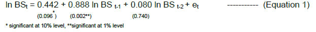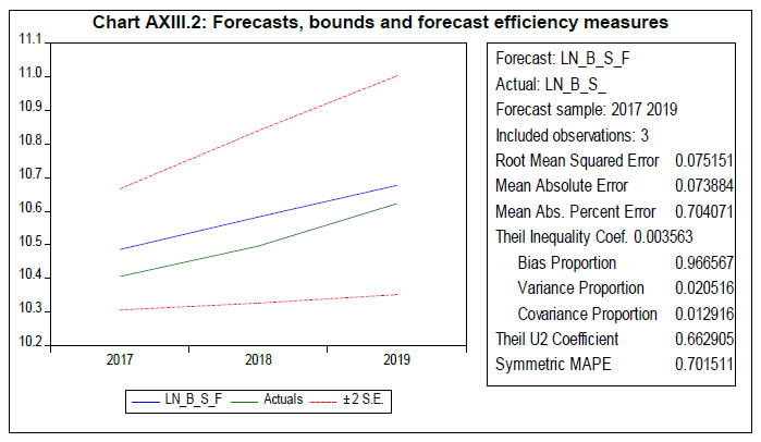 (4) Balance sheet projection Balance sheet (BS) projection is done using an autoregressive model, AR(2). The fitted model is, ![]() The projected balance sheet, in accordance with the aforementioned model is given in table AXIII.4.