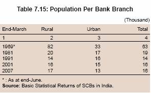 7.45 Since the 1970s, the promotional aspects of banking policy have come into greater prominence. The major emphasis of the branch licensing policy during the 1970s and the 1980s was on expansion of commercial bank branches in rural areas, resulting in a significant expansion of bank branches and decline in population per branch. The branch expansion policy was designed, inter alia, as a tool for reducing inter-regional disparities in banking development, deployment of credit and urban-rural pattern of credit distribution. In order to encourage commercial banks and other institutions to grant loans to various categories of small borrowers, the Reserve Bank promoted the establishment of the Credit Guarantee Corporation of India in 1971 for providing guarantees against the risk of default in repayment. The scheme, however, was subsequently discontinued.