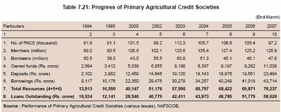 7.38 In order to expand the credit and financial services to the wider sections of the population, a wide network of financial institutions has been established over the years. The organised financial system comprising commercial banks, regional rural banks (RRBs), urban co-operative banks (UCBs), primary agricultural credit societies (PACS) and post offices caters to the needs of financial services of the people. Besides, MFIs, self-help groups (SHGs) also meet the financial service requirements of the poorer segments. Furthermore, development of the institutional framework in recent years has focussed on new models of expanding financial services involving credit dispensation using multiple channels such as civil society organisations (CSOs), non-government organisations (NGOs), post offices, farmers’ clubs, and panchayats as business facilitators/correspondents. Specific financial instruments/products were also developed in order to promote financial inclusion.