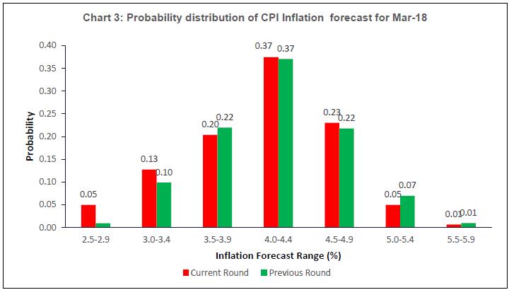• Forecasters assigned the highest probability to CPI inflation being in the range 4.0-4.4 per cent in March 2018 (Chart 3).
