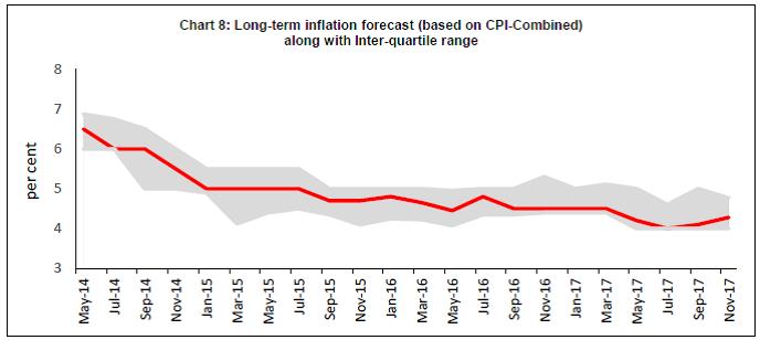 The Reserve Bank has been conducting the Survey of Professional Forecasters (SPF) since September 2007. Thirty two panelists participated in the 49th round of the survey conducted during November 20172. The survey results are summarised in terms of their median forecasts and consolidated in Annexes 1-8, along with quarterly paths for key variables.
