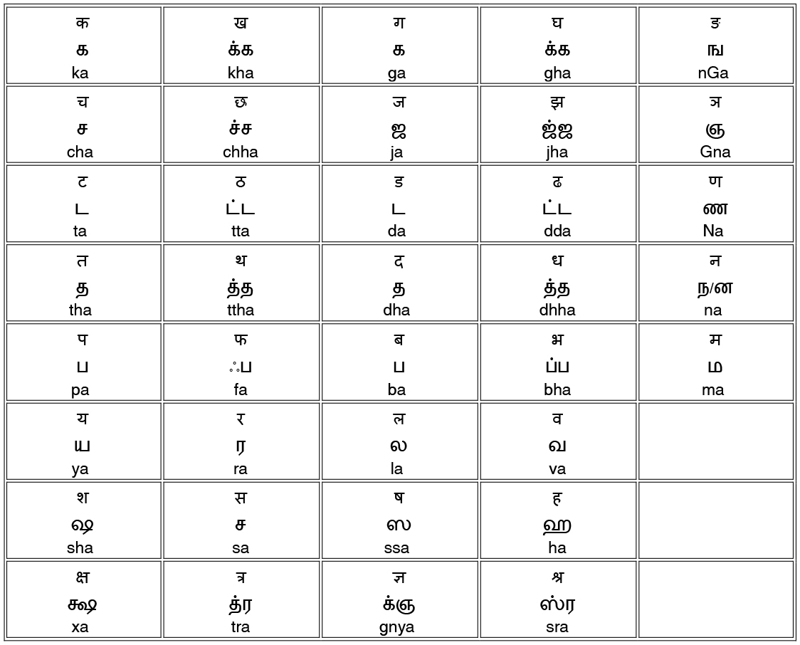 1.2 व्यंजन மெய்யெழுத்துக்கள் (मेय्येलुत्तुक्कल) Consonants