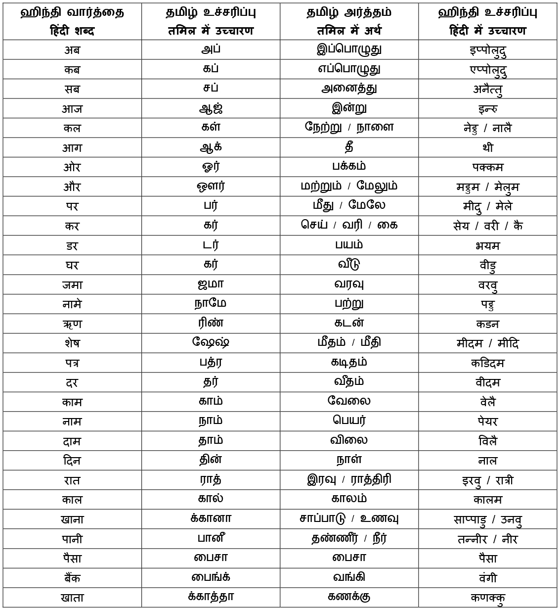 (தமிழ் तमिल – ஹிந்தி हिंदी)