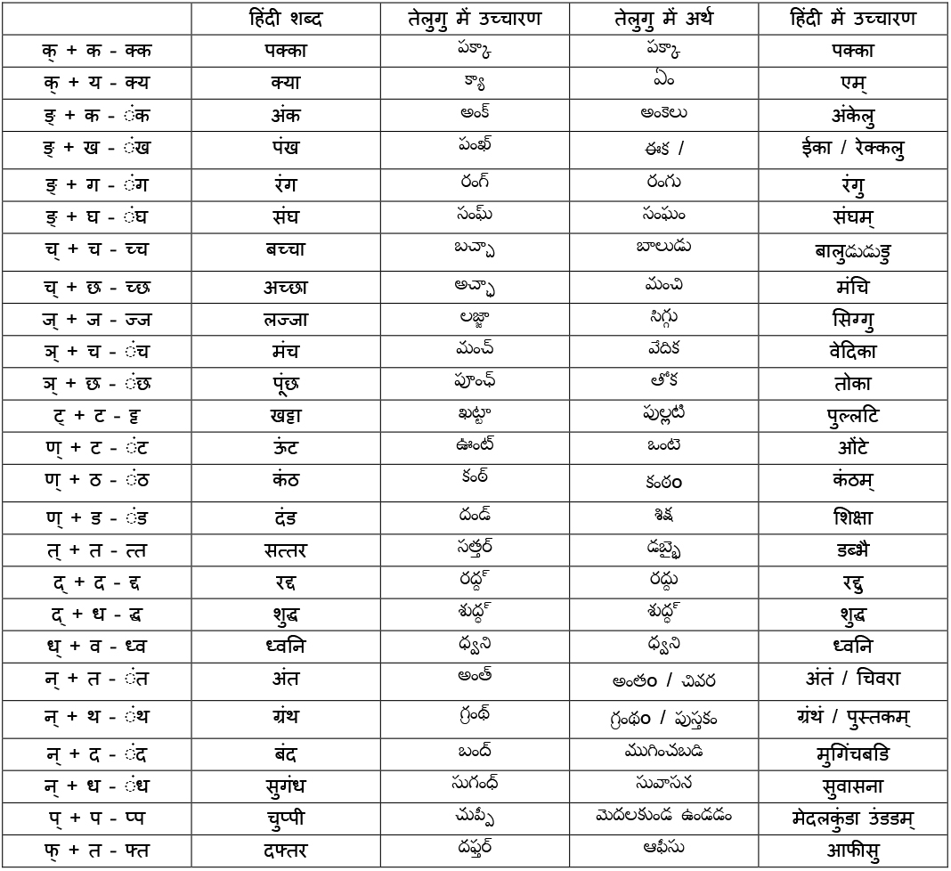 (తెలుగు तेलगु – హిందీ हिंदी)