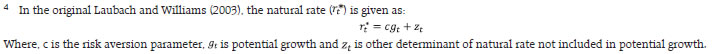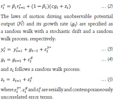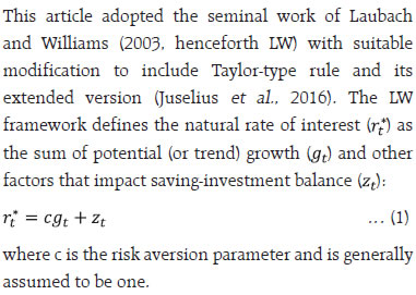 by Harendra Kumar Behera^ Monetary policy divergence across jurisdictions has reignited the debate about the level of the natural rate of interest. Updating the estimates of natural rate of interest for India with post-pandemic data, we find an upward shift, driven by growth of potential output. The estimate of the natural rate for Q4:2023-24 is at 1.4-1.9 per cent as compared with our earlier estimate of 0.8-1.0 per cent for Q3:2021-22. These estimates are centred in wide bands of uncertainty, warranting careful interpretation in the assessment of the monetary policy stance. Introduction The surge in inflation in the post-pandemic period exacerbated by geopolitical conflicts evoked a synchronised monetary policy response across jurisdictions. As central banks lifted policy rates from decade-long historical lows and adopted aggressive restrictive stances, financial conditions tightened, and real interest rates rose substantially. Subsequently, inflation eased from its peak at differing speeds and magnitudes, but the last mile of disinflation is proving to be arduously protracted. With central banks choosing to maintain disinflationary stances, a growing divergence from market expectations has reignited the debate about the level of the natural rate of interest or r-star1. In India, this debate is reflected in a proliferation of web searches of the term “neutral rate” (Chart 1). On one side of the debate, it is argued that that the changes in some of the structural determinants of r-star are driving it upwards (Brand et al., 2023; Benigno et al., 2024; Schnabel, 2024). On the other side of the spectrum, it is believed that the real interest rate should return to its pre-pandemic level once the short-term shocks dissipate (IMF, 2023a). For India, estimating the natural rate becomes particularly challenging in view of significant structural transformations and demographic shifts. In particular, pandemic-induced complexities have altered estimates of potential output and profoundly impacted inflation dynamics. This has necessitated a reassessment of traditional models and approaches to measuring the natural rate of interest. The challenge is to incorporate the impact of these unprecedented shocks into estimations. In its Wicksellian origins, the natural rate of interest is associated with an economy operating at full capacity without generating inflationary pressures: “There is a certain rate of interest on loans which is neutral in respect to commodity prices and tends neither to raise nor to lower them.”2 A strand of the literature has operationalised this definition by defining it is the level of the interest rate at which saving equals to investment, consistent with stable prices. In operational terms, the natural rate serves as a reference for gauging the stance of monetary policy (IMF, 2023a). Hence, the difference between the real policy interest rate and the natural rate measures the monetary policy stance. When the policy rate is set below the natural rate, the stance is regarded as accommodative, and the converse signifies a restrictive stance. The policy stance is neutral when the real policy rate is at the level of the natural rate. ![]() As the natural rate is not observable, it has to be estimated, as it is crucial for setting appropriate monetary policies and assessing them. Natural rate estimates are sensitive to both model selection, measurement issues and statistical uncertainty. To elaborate further, different models can produce estimates that can differ substantially. Uncertainty also stems from the data, their measurement as well as estimation approaches. Hence, estimates of the natural rate are presented in the form of confidence bands surrounding the results for every model. Informed judgement is called for in sifting through the broadest possible model estimates while incorporating all information available outside models, i.e., a risk management approach in the face of high uncertainty (Jordan, 2024). Balancing the risk of tightening monetary policy too much against the risk of tightening too little is essential in deciding the policy rate, rather than taking the decision solely based on the natural rate which is imprecise in values (Powell, 2023). Against this backdrop, the rest of the article is structured into four sections. After a discussion on determinants of the natural rate of interest in Section II, Section III presents different methodologies that are used to estimate it. Updated estimates of the natural rate for India are reported in Section IV. Concluding observations are set out in Section V. II. Drivers of the Natural Rate of Interest The natural rate is determined by factors that impact long-run saving-investment behaviour. In particular, factors that reduce saving or increase investment raise the natural rate. Higher productivity growth associated with new investment opportunities raises demand for capital which, in turn, increases real interest rates and therefore, the natural rate of interest (Boocker et al., 2023). Longer life expectancy raises saving in order to support a longer retirement. A lower dependency ratio – reflecting a higher share of working age people in the population – increases saving as those in the workforce typically save more than the elderly and young dependants. Higher inequality raises saving as richer households save a larger share of their income relative to less affluent families. Higher risk aversion induces higher saving – in particular, in safe assets – as a buffer against future economic downturns and, at the same time, lowers investment. Investments in risky assets are found to increase with advancement in digital technologies. Persistent fiscal deficits reduce gross saving and crowd out private investment. Under the secular stagnation hypothesis, an economy can experience rise in saving and fall in investment due to lack of demand for new investment and this could keep interest rates low for longer (