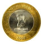 In 2007, Rs. 5/- ferritic stainless steel coin with waves in its design was issued. In 2008, a new Rs. 10/- coin with 15 rays connecting inner and outer rings/circles was issued. These are 2 distinct designs, one is radiating sun rays symbolising vertical flow and the other is water waves depicting the smooth fluid mass expanding horizontally representing the ceaseless flow of data/information in the atmosphere.