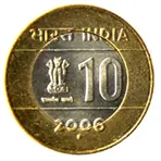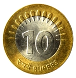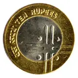 In 2011, the Rupee symbol (₹), the identity mark of Indian rupee was introduced in denominations of ₹1, 2 and 5 depicting lotus buds and flower with stems and leaves on either side of the denominational value. The ₹10 coin continued to be issued in bi-metal as previously with ‘₹’ above the numeric value with ten rays instead of fifteen. New 50 paise denomination also issued in the new series.