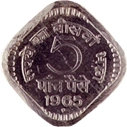 With commodity prices rising in the sixties, small denomination coins which were made of bronze, nickel-brass, cupro-nickel, and Aluminium-Bronze were gradually minted in Aluminium. This change commenced with the introduction of the new hexagonal 3 paise coin. A twenty paise coin was introduced in 1968 but did not gain much popularity.