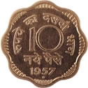 The move towards decimalisation was afoot for over a century. However, it was in September 1955 that the Indian Coinage Act 1906 was amended to pave the way for the country to adopt a metric system for coinage. The amended Act came into force with effect from 1st April 1957. The rupee remained unchanged in value and nomenclature. It, however, was now divided into 100 'Paisa' instead of 16 Annas or 64 Pice. For public recognition, the new decimal Paisa was termed 'Naya Paisa' till 1st June 1964, when the term 'Naya' was dropped. The value is described in Hindi explaining the value equal to the hundredth part of one rupee.