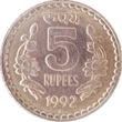 In 1982, the Rs. 2/- coin was introduced depicting the India map superimposed with the national flag explaining National integration. In 1992, the Rs. 5/- definitive coin in cupro-nickel was introduced to supplement the paper currency. Lotus buds and flower with stems and leaves became the main motif of this denomination. The lotus symbol was re-introduced on Rupee symbol series in 2011 for all denominations except Rs. 10/-.